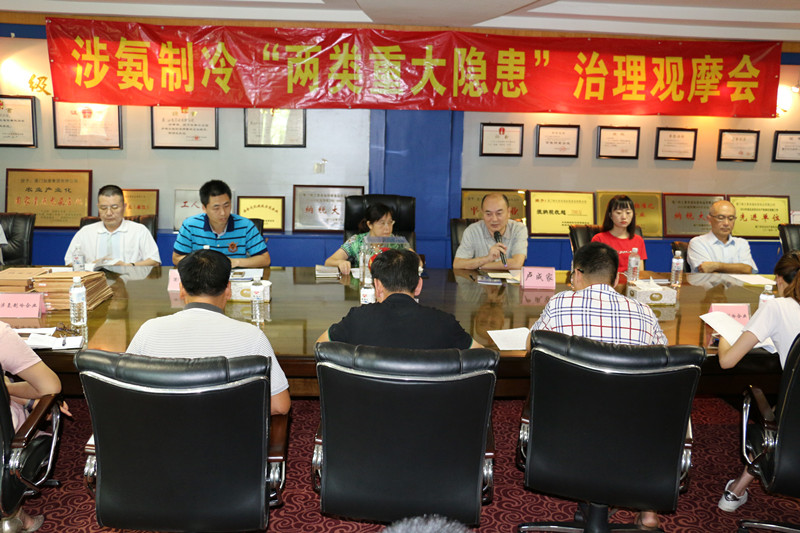 为认真贯彻落实市安委办《关于转发国务院安委会办公室关于明察暗访福建省涉氨制冷企业液氨使用专项治理情况的通报通知》(厦安办[2017]206号)、市局《关于推进危险化学品双重预防机制和涉氨制冷两类重大隐患治理示范建设的通知》(厦安监管二[2018]13号)等文件要求。9月13号,市安监局和翔安安监局联合在厦门味之素来福如意食品有限公司召开涉氨制冷“两类重点隐患”治理观摩会。市安监局、各区安监局、各区涉及速冻装置的涉氨企业等企业相关负责人共计30余人参加。