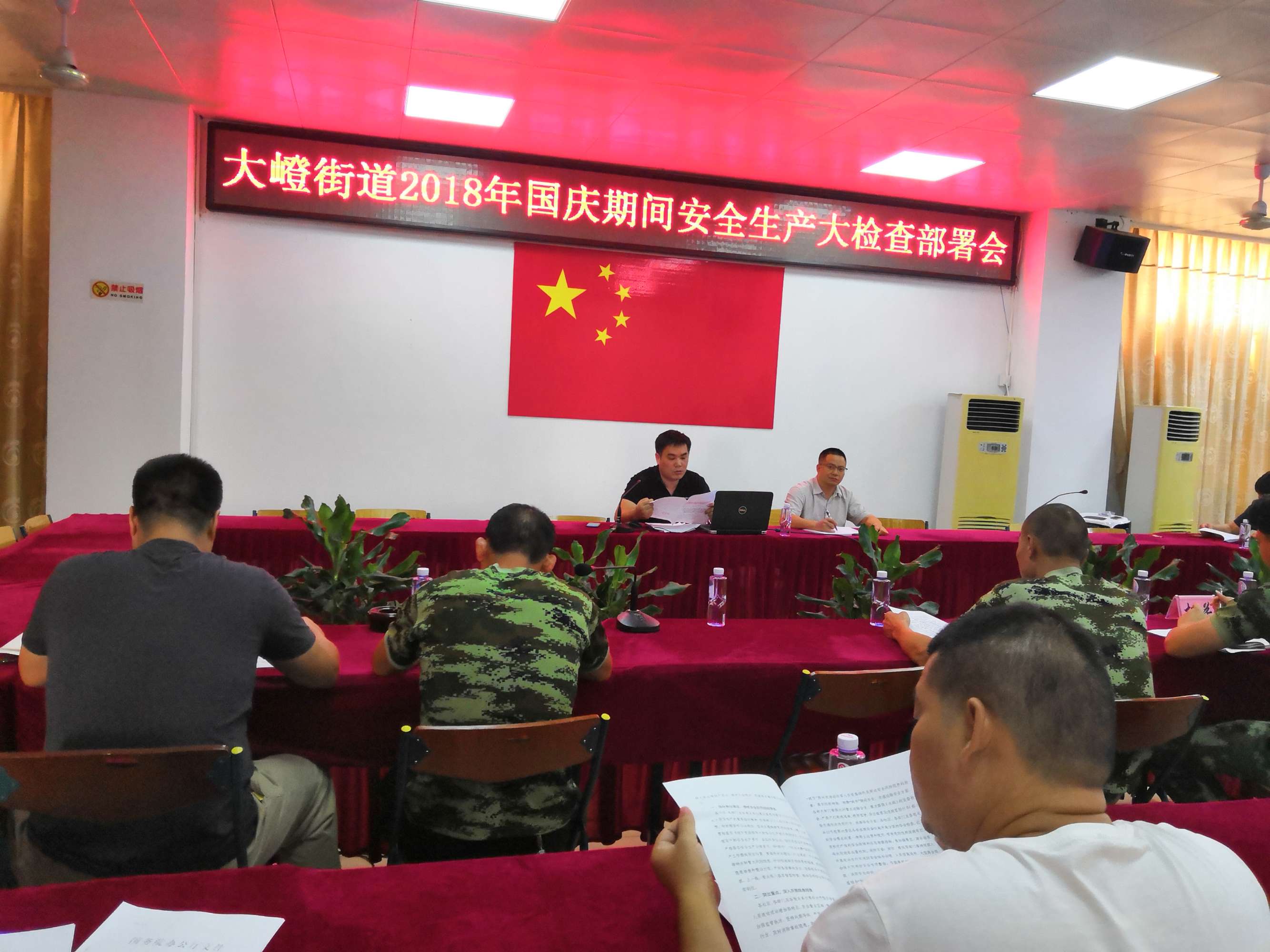 为切实做好国庆期间安全生产工作。9月27日下午,大嶝街道叶永友常务副主任主持召开了2018年国庆期间安全生产大检查部署会议,并宣贯了《消防安全责任制实施办法》,要求做好节前安全大检查工作,确保广大群众度过一个欢乐、祥和、平安的节日。根据会议部署要求,9月28日上午,由街道安监站牵头组织开展消防、燃气等节前安全大检查,对餐饮、人员密集型等场所进行隐患排查,杜绝安全隐患,并现场宣传消防安全知识,提高了群众的安全意识。