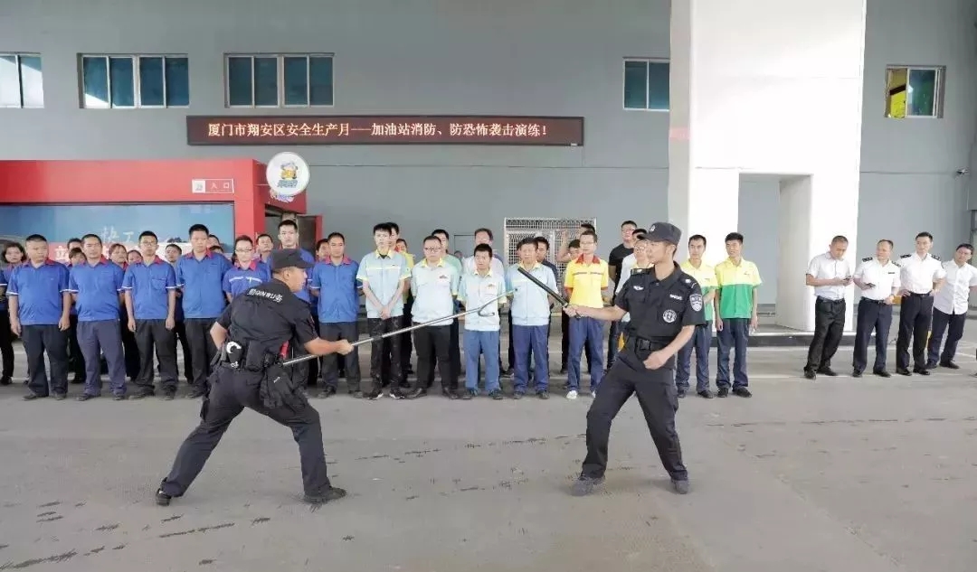 6月11日上午,中石化厦门分公司翔安片区2019年“安全生产月”应急演练活动在马巷中石化加油站有序展开。活动主要围绕“灭火器材使用及防恐应急处置”两个重点内容开展,旨在帮助加油全员掌握防火救火基本技能,增强防恐应急处理能力,提高安全生产底线思维,树牢安全岗位职责意识,为下一步活动全面铺开取得实效,奠定良好基础。此次演练有以下特点: