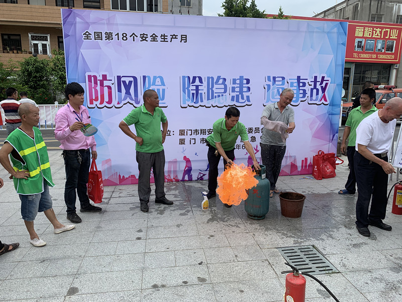 为进一步提高辖区群众的消防安全意识、安全防范及面对突发事故的自护自救能力。6月6日下午,翔安区安全生产委员会办公室和翔安区应急管理局联合消防大队、区总工会等相关安办成员单位在新圩邮局旁小广场举办全国第18个“安全生产月”宣传咨询活动,活动主题为“防风险、除隐患、遏事故”。